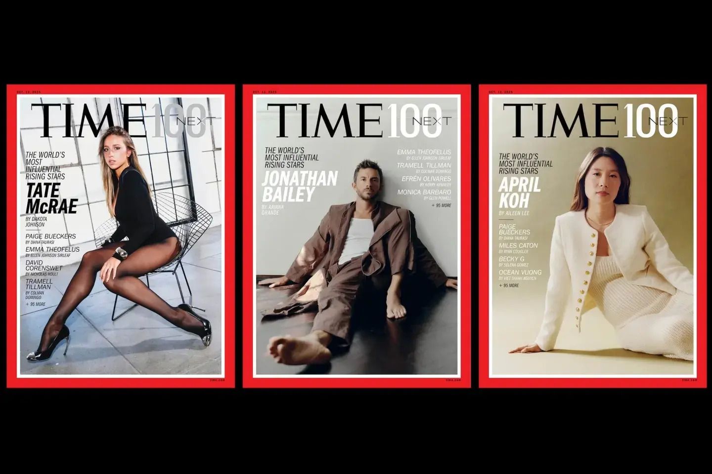 | While we've made it our mission at TIME to cover people who have reached the pinnacle of their fields, the TIME100 Next is an opportunity to recognize those still on the rise. Our goal with this annual project is to provide a snapshot of the moment and to highlight those who we feel are truly changing the world. | This year's covers feature three people transforming their fields: actor Jonathan Bailey, singer Tate McRae, and CEO April Koh. Bailey stars in blockbusters including Jurassic World: Rebirth and Wicked, while simultaneously building the Shameless Fund, his foundation benefiting LGBTQ+ nonprofits. McRae, the 22-year-old Canadian pop star, has had her music streamed more than 20 billion times across all platforms, and is now on a world tour. Koh became the youngest female founder leading a unicorn through her vision of improving access to mental-health care via her startup Spring Health, which is used in over 40 countries. | See who else made the list below. | READ THE STORY » | | What I've been reading this week | | | | | | | |