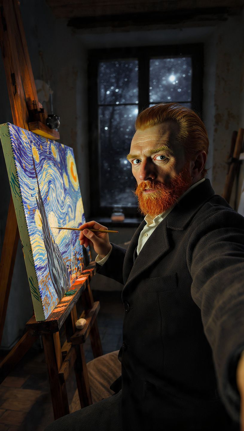 | | Image of the Day |  | Artwork submitted by Mindstream reader Douglas: "A selfie of Vincent van Gogh painting "Starry Night"" |