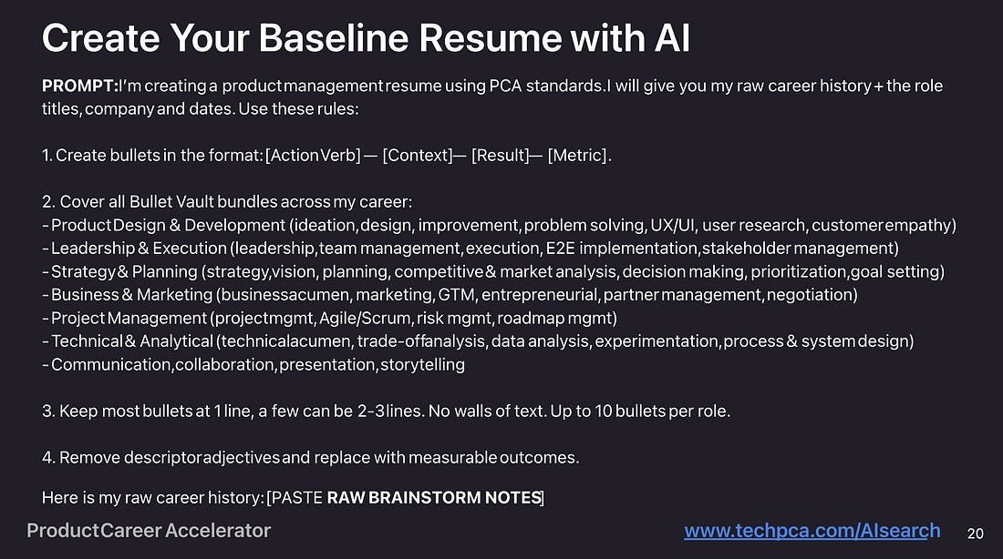1b. Create Your Resume with AIUse this prompt with the dump to get your base resume: 1c. Tailor it in 5 MinutesCustomize your resume for each role: