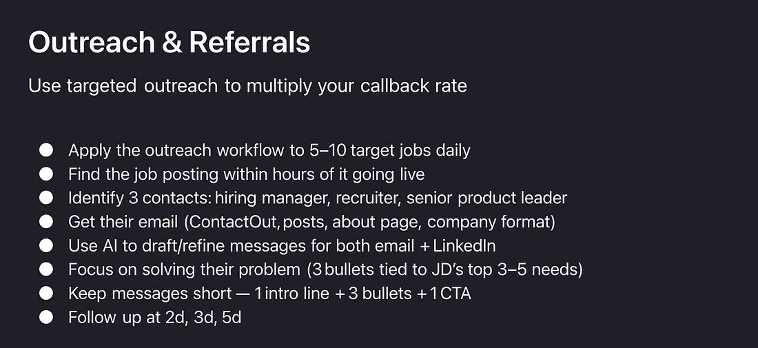 2. How to Apply to Jobs using AICold apps: 1% callback. Outreach + app: 10-15% callback. 2a. Build Your Target Company ListKeep your search broad. More interviews = more offers = better leverage. 2b. Find the Right PeopleFor every job, find 3 people: