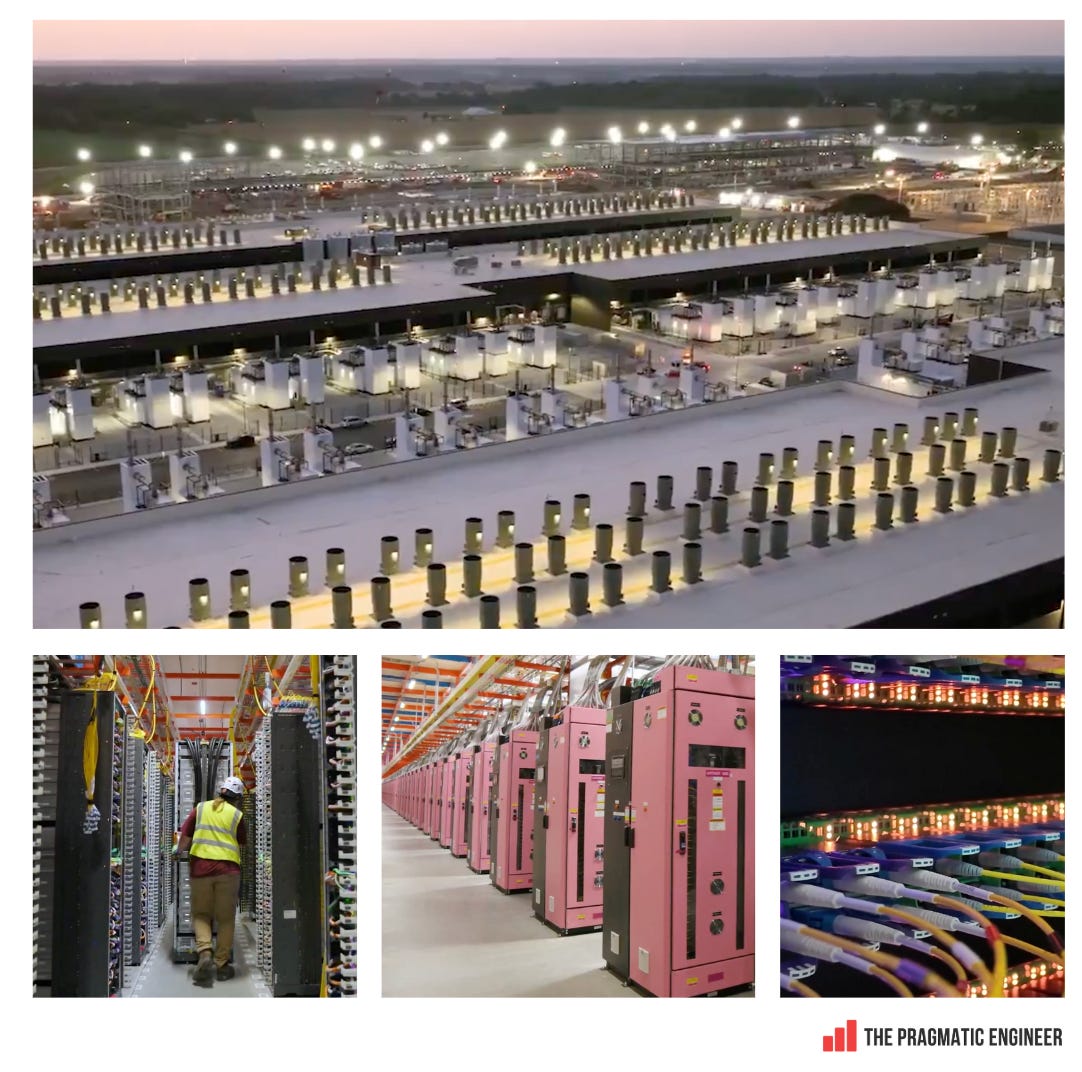 If this line of reasoning sounds familiar, it’s because most of the layoffs in 2023 were justified the same way. The tech industry overhired during the pandemic in 2020-2021, making orgs more bloated and decision-making slower. In February 2023, I reported on the trend of fewer middle managers, with Meta the first Big Tech giant to reduce its management layers. In 2023, most of Big Tech followed this approach with layoffs or reorgs. Managers acquired more reports, and tech companies cut down the number of layers between the CEO and individual contributors. Given Amazon did other massive layoffs in 2023, it’s unlikely they missed the industrywide trend for fewer managers. While the current layoffs seem to be targeting managers quite a bit – from the Washington State layoffs, 20% of those let go are managers – there are still more ICs laid off than managers, overall. So, this official explanation doesn’t pass my personal “smell test”. Layoffs to buy more GPUs?The day after its jobs announcement, Amazon had more big news, this time about AI: it unveiled Project Rainer, the largest AI computing platform AWS has ever built. It already has 500,000 Trainium2 chips (built by Amazon), This capacity is already 70% larger than any AI computing platform in AWS’s history, and Anthropic is using all of it (!!) to train its next models. Below is an image of one of the several Project Rainer data centers packed with Amazon GPUs: