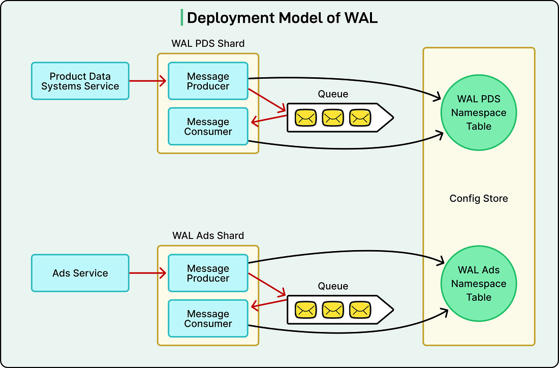Netflix organizes WAL deployments into shards. A shard is an independent deployment that serves a specific group of applications or use cases. For example, one shard might handle the Ads service, another might handle Gaming data, and so on. This separation prevents the “noisy neighbor” problem, where one busy service could slow down others running on the same system. Inside each shard, there can be multiple namespaces, each with its own configuration and purpose. These configurations are stored in a globally replicated SQL database, ensuring they are always available and consistent, even if a region goes offline. See the diagram below for the deployment model of WAL at Netflix: ConclusionSeveral key design principles shaped the success of WAL. The first is its pluggable architecture, which allows Netflix to switch between different technologies, such as Kafka or Amazon SQS, without changing application code. This flexibility ensures that teams can choose the most suitable underlying system for their specific use cases while relying on the same core framework. Another principle is the reuse of existing infrastructure. Instead of building everything from scratch, Netflix built WAL on top of its already established systems, like the Data Gateway platform and Key-Value abstractions. This approach saved development time and allowed the new system to fit naturally into the company’s broader data architecture. Equally important is the separation of concerns between producers and consumers. Because these components scale independently, Netflix can adjust each one based on traffic patterns or system load. This independence allows WAL to handle massive spikes in demand without service degradation. Finally, Netflix recognizes that even a system designed for reliability must consider its own limits. The team continuously evaluates trade-offs, such as dealing with slow consumers or managing backpressure during heavy traffic. Techniques like partitioning and controlled retries are essential to keeping the system stable. Looking ahead, Netflix plans to enhance WAL further. Future improvements include adding secondary indices to the Key-Value service, which will make data retrieval faster and more efficient, and supporting multi-target writes, allowing a single operation to send data to multiple destinations, such as a database and a backup system at the same time. References: SPONSOR USGet your product in front of more than 1,000,000 tech professionals. Our newsletter puts your products and services directly in front of an audience that matters - hundreds of thousands of engineering leaders and senior engineers - who have influence over significant tech decisions and big purchases. Space Fills Up Fast - Reserve Today Ad spots typically sell out about 4 weeks in advance. To ensure your ad reaches this influential audience, reserve your space now by emailing sponsorship@bytebytego.com. |