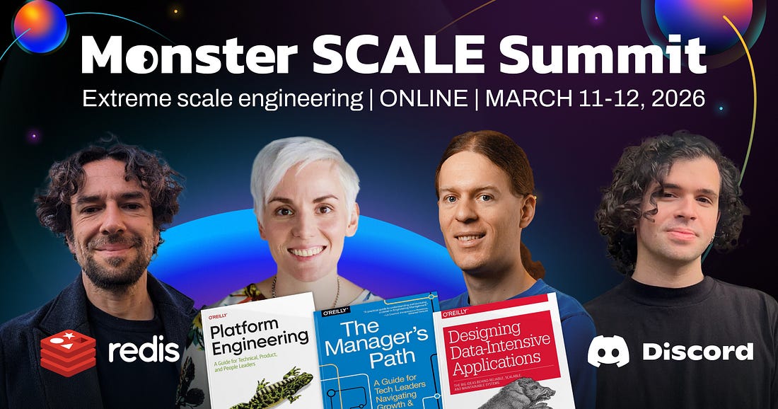 Monster SCALE Summit 2026 (Sponsored)Extreme Scale Engineering | Online | March 11-12 Your free ticket to Monster SCALE Summit is waiting — 30+ engineering talks on data-intensive applications Monster SCALE Summit is a virtual conference that’s all about extreme-scale engineering and data-intensive applications. Engineers from Discord, Disney, LinkedIn, Pinterest, Rivian, American Express, Google, ScyllaDB, and more will be sharing 30+ talks on topics like: